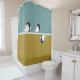Refresh your bathroom with this shower curtain featuring a minimalist bird design. The composition showcases clean bird silhouettes, bold geometric colour blocks, and simple lines in muted teal and mustard, creating a Scandinavian-inspired aesthetic that brings modern elegance to your space.