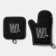 Minimalist Black and Grey Personalized Monogram Oven Mitt & Pot Holder Set