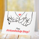 Celebrate the beauty of friendship with this elegant greeting card. Featuring a minimalist black and white line art of two hands linked by pinky fingers, with a small red heart symbolizing the bond of friendship, this card is perfect for conveying heartfelt sentiments. The "Happy Friendship Day!" message on the front is complemented by a personalizable message inside, allowing you to add your own touch of appreciation for your friend. This card is a lovely keepsake that encapsulates the essence of friendship.