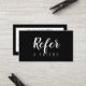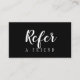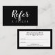 Minimalist black and white elegant script referral card featuring stylish hand-drawn script typography. Personalize by adding your contact information on the reverse with your referral offer. Designed by Thisisnotme©