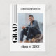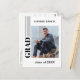 Unique and trendy minimalist style congratulations graduate announcement and celebration party invitation card, framed with a stylish black abstract stripes border pattern on a crisp white background. With room to customize or personalize with a photo, the name of the graduate, class graduation year, high school, future college or university name, and celebration party event information. Let the family, friends, and neighbours know there is a happy graduate ready to conquer the world, and invite everybody to come to celebrate the happy event with you!