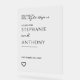 Minimalist black and white with heart modern wedding rehearsal dinner acrylic sign. The design features a trendy and modern design in black and white.