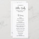 Modern wedding program featuring a simple design with your names in an elegant script typography and your event details in a minimalist sans serif font. All design elements are in black and white. This chic wedding program works well with any style of wedding.