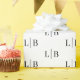 This wrapping paper features a modern, minimalist design with a repeating pattern of bold black letters "L" and "B" arranged in an alternating grid format. The clean white background enhances the high contrast, creating a sleek and contemporary look perfect for any occasion. Ideal for gift wrapping, this design exudes simplicity and precision, making it versatile for various celebrations or everyday use. Its abstract representation focuses on typography, offering a stylish touch to your wrapped presents.