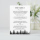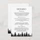 Enhance the elegance of your winter wedding with this minimalistic black and white enclosure card, perfect for sharing important wedding details. Featuring a white background with delicate black pine tree silhouettes, this card exudes sophisticated charm. Ideal for couples seeking a warm, modern touch, it combines woodland beauty with refined typography for a polished look. Perfect for providing guests with venue details, schedule, and any other important information, this enclosure card complements your winter wedding invitation beautifully. Easily personalize with your specific wedding details to make your celebration even more special.