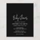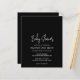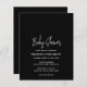 Modern black budget baby shower invitation featuring a simple design with the event title in an elegant script typography and your event details in a minimalist sans serif font. This chic baby shower invitation is gender neutral, making it perfect whether you are having a baby boy or baby girl.