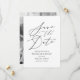 Announce your upcoming wedding in style with our Minimalist Calligraphy photo save the dates. The black and white save the date cards feature the words "Save the Date" in an elegant calligraphy script with your names, wedding date, & location featured below. The back of the save the dates features your favourite engagement photo.