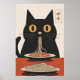 Minimalist Black Cat Eating Spaghetti Japanese Art Poster