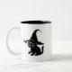 Minimalist Black Cat with Witch Hat Design on Two-Tone Coffee Mug