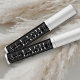Minimalist mascara tube labels in modern black and white design. This fully editable beauty product sticker allows you to edit all text and colours to make custom packaging for your mascara, lash serum, brow gel, lip gloss, concealer tubes and more. This 2.6" x 1.5" (66mm x 38mm) label should fit standard 8ml and 10ml cosmetic wand tubes but please verify your packaging size to ensure a good fit.