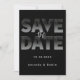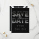 A minimalist design featuring black glitter drip letters forming the words SAVE DATE on black background with silver-coloured typography. Send this elegant and chic Save the Date card to your friends and family to announce your upcoming nuptials. You can add your favourite photograph to the back of the card and customize the additional text to suit your style.