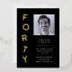 A 40th birthday party invitation with modern, minimalist, black-and-gold design. This simple design features the typography "forty" stacked on top of each other in a playful way. Customisable in any colour. Add a photo of the birthday man.