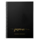 Girly Feminine Minimalist Simple Clean Black And Gold Monogram Name Signature Script Custom Personalized Notebook. These design featuring your first name in a pretty hand lettered style swash tail font typography, with full name template on black and gold background. These are easy to customize and can be used as a Cookbook, Diary Planner, Sketchbook, Journal and more. Also great stylish feminine gift for birthday, mother’s day, wedding, bridal shower, sweet 16 birthday party and baby shower, graduation, business, back to school, professional work and for anyone who likes simple clean things.