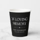 Memorial service paper cups in black with white text. In loving memory written in a standard font. Personalize by writing your loved one's name and years living.