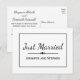 Minimalist Black Just Married Wedding Announcement Postcard