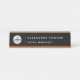 A simple black name plate with your business logo, employee name and professional title. Edit it easily with your info.