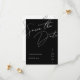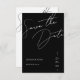 Minimalist Black Script Typography Wedding Save the Date Card. Elevate your wedding with our modern black script typography wedding save the date, a timeless choice for your special day. This beautiful wedding card seamlessly combines classic and elegant design elements with a simplistic white aesthetic, creating a striking contrast that sets a formal and sophisticated tone. The simplicity of the black colour scheme and the elegance of the white typography make this save-the-date a perfect choice for couples seeking a simple yet impactful statement. Choose this card to let your love shine in a classic and modern fusion