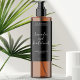 This elegant minimalist waterproof product label for cosmetic bottles features a a black background with white text. This label contains space for your product name, business name, product weight, ingredients, instructions, social media, and business address. This label measures 4 inches by 3.5 inches (102 mm by 89 mm) and is suitable for bottles with a diameter of 1.3 inches (33 mm) or more and a label height area of at least 3.5 inches (89 mm). Most 8 oz (240 ml) and 16 oz (480 ml) bottles fit this description (specifically cosmo or bullet and cylinder style bottles), but check the bottle specifications to be sure. This label makes a great choice for packaging beauty products that require larger waterproof labels like shampoos, hair conditioners, lotions, shower gels, shaving foams, cleansing foams, body washes, bubble baths, and hair oils.