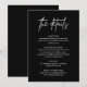 The "Minimalist Black Wedding Details Enclosure Card" brings sleek sophistication to your wedding stationery. Featuring a clean, black design, it offers an elegant way to share essential wedding details like directions, accommodations, or special notes. Perfect for couples who embrace modern minimalism, this card pairs effortlessly with any invitation suite. Its bold yet understated look ensures that your wedding information is conveyed with clarity and style, adding a touch of timeless elegance to your special day.