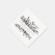 This wedding napkin features bold black botanical wildflower and leaf illustrations framing the couple's names, wedding date, and location in classic serif lettering on a clean white background. A simple elegant look that works beautifully for an outdoor, garden, or rustic wedding with a modern minimalist feel.