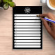 This minimalist notepad features white to-do list checkboxes, with a black background. Above is a space for you to insert your business logo. You can edit the shape of the checklist as needed. Great gift for home business owners. ••• For more black and white business stationery, visit my store www.zazzle.com/the_business_babe ••• For custom orders, message me on Zazzle