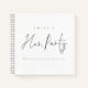 Minimalist Black White Hen Party Guest Book, a special keepsake for the bride to be. The main heading is in a set script and easily personalise the rest of the text to your own details. The colours can be changed to any you wish to suit your wedding colours via the Customize Further option.