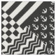 Black and White Minimalist Mixed Patterns of Stripes, Polka Dots, Hearts, Check, Anchor, Blob, Harlequin rhombus, Zigzag Chevron, crowns, fleur-de-lis, floral illustration, Houndstooth Tree illustration, Paisley and Irregular Abstract Designs