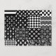 Black and White Minimalist Mixed Patterns of Stripes, Polka Dots, Hearts, Check, Anchor, Blob, Harlequin rhombus, Zigzag Chevron, crowns, fleur-de-lis, floral illustration, Houndstooth Tree illustration, Paisley and Irregular Abstract Designs