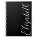 Lovely, modern black background accents a white script font, lending minimal elegance to school or work essentials. Make it truly unique by adding a name, subject or title.