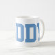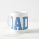 I ordered this mug for my husband's 1st father's day. It came on time and the colors are a great cornflower blue. It says "daddy" around it, but if you look at it straight on, you see "dad". I just wish it was a little bigger. It's a relatively small coffee mug. The color is a beautiful cornflower blue. Very different from any other "dad" mug out there.