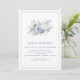 Minimalist Blue Florals Line Border QR Wedding. Available digitally and printed. Modern elegance with this floral design. With a pale blue and white bouquet above simplistic and fully editable typographyad a sngle line border. Add your QR code to your wedding website on the back so your guests can RSVP and see all the details online without the need for separate enclosures. Text and background colours can be changed if you wish to better suit your wedding theme, as can the colour of the QR code, via the customise further option.