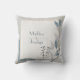 Give your event a touch of chic, contemporary style with this gorgeous throw pillow design. The artwork features a modern, minimalist aesthetic, centred around a crisp white square frame with a slender, luxurious gold border. This is set against an abstract light grey background with sweeping white paint washes and subtle blue splatter effects. The frame is accented by delicate dusty blue and grey foliage, a thin bare branch, and clusters of dark berries, creating a gentle, organic contrast to the clean lines and geometric blocks of soft blue and tan that ground the composition. This sophisticated piece is ideal for creating a minimalist, modern wedding lounge, adding a subtle yet stylish touch to a rehearsal dinner seating area, or enhancing the refined atmosphere of a winter bridal shower. It also works beautifully as a chic accent for a contemporary office or a modern urban apartment. This item's versatile design makes it an excellent choice for businesses, other celebratory events, or interior decorators looking for romantic floral décor.