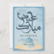 A clean and artistic greeting card featuring a soft blue watercolor mosque with golden crescent accents. Ideal for those who love simple, modern, and serene Islamic art.