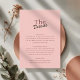 This minimalist wedding details enclosure card features a soft blush pink background with clean retro-inspired typography. The design combines vintage charm with a modern, simple layout, making it easy to read and visually appealing.