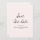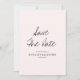send your save the date card with that special and minimalist typography and stylish fancy font against plai blush pink background in front and square pattern in back.
