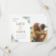 Set the tone for your special day with our Minimalist Boho Greenery Hand Painted Watercolor Eucalyptus White Flowers Photo Save the Date Invitation. This design marries minimalist elegance with boho charm, featuring hand-painted eucalyptus and delicate white flowers. Add your cherished photo to make it uniquely yours, ensuring your guests mark their calendars for your wedding.