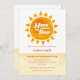 Cute simple minimalist " here comes the son" baby shower invitation, design feature with watercolor burnt orange sun and sunshine decor with yellow and orange watercolor stripes feel like the sand beach desert. Perfect for baby boy baby shower sunshine theme. You can customize text and colour.