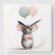 Minimalist Boho Mouse Balloon Nursery Kids Room Square Wall Clock