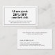 Elegant fully customizable discount card template with bold fonts, black and white colours. Perfect marketing tool for beauty related professionals, beauty salon.