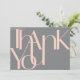 Boldly show your heartfelt appreciation with these simple 7" x 5" wedding thank you cards featuring the words, "Thank you," in large light coral letters on a grey background. The backs of the cards feature a spot for your favourite photo, little heart, the message, "with love from the new," an optional message box, and a placeholder for the newlywed names.