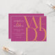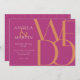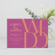 The simple but bold 7" x 5" wedding invitations feature the words, "We Do," in oversized cantaloupe orange letters on a magenta background with an orange ampersand and cream editable place holder text for the wedding couple's first names, date, time, venue, venue address with the message at the bottom, "reception to follow."