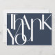 Boldly show your heartfelt appreciation with these simple 7" x 5" wedding thank you cards featuring the words, "Thank you," in large white letters on a navy blue background. The backs of the cards feature a a spot for your favourite photo, little heart along with the message, "with love from the new," an optional message box, and a placeholder for the newlywed names.