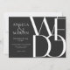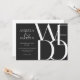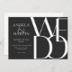 The simple but bold 7" x 5" wedding invitations feature the words, "We Do," in oversized white letters on a black background with white and grey editable place holder text for the wedding couple's first names, date, time, venue, venue address with the message at the bottom, "reception to follow."