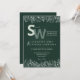 This nature-inspired botanical wedding invitation beautifully blends minimalist elegance with lush greenery. Set against a deep forest green background, it features delicate white leafy illustrations adorning the top and bottom borders, creating a refined and organic aesthetic. The large monogram initials stand out in modern typography, while subtle accents like the wedding date banner and fine foliage give the card a timeless charm. Perfect for simple weddings, garden ceremonies, and eco-friendly celebrations, this minimalist wedding stationery captures the harmony of nature and modern sophistication.