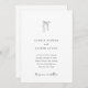 These trendy yet elegant, black and white wedding invitations feature a modern and minimalist style, with handwritten script and classic text. A hand-drawn ribbon bow is featured in a subtle illustration.