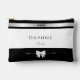 Celebrate your walk down the aisle with this stunning minimalist Bride accessories bag. Featuring crisp black and white typography and a delicate bow detail, this pouch is the ultimate "wedding morning" essential for keeping your touch-up lipstick and jewelry safe. It serves as a beautiful keepsake of your special day and a stylish addition to your bridal vanity. Part of the coordinated bridal collection, this bag pairs perfectly with our matching compact mirrors, tumblers and tote bags to create a high-end, personalized gift set. Whether it's for a morning-of vanity display or a thank-you gift, this "quiet luxury" accessory is a timeless keepsake.