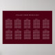 Modern and minimal solid burgundy red color background, 10 table wedding seating chart. Personalize text, customize font style, color and size. Designed to coordinate with our Burgundy Blush Botanical Floral Collection.