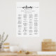 This minimalist calligraphy alphabetical seating chart is perfect for a rustic wedding. The simple and elegant design features classic and fancy script typography in black and white. This sign can be used to organize your guests alphabetically or by table number. It includes enough room for about 150 wedding guests. Make room for more (or less) by clicking the customize button and increase or decrease the size of the font. Personalize this sign with the names of the bride and groom and the date.