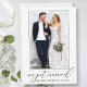 Minimalist Calligraphy Just Married Photo Wedding Announcement