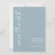 Minimalist Calligraphy QR Code Dusty Blue Wedding. Available digitally and printed. Optional QR code to your wedding website on the back which will be automatically generated when you change the sample url to your own website url or delete sample code if not required. Stylish set calligraphy is rotated to the left hand side, with all the details stylishly to the right with lots of white space for a contemporary feel. Easily personalise with your details. And change the colour of text and background if you wish via the edit further option.